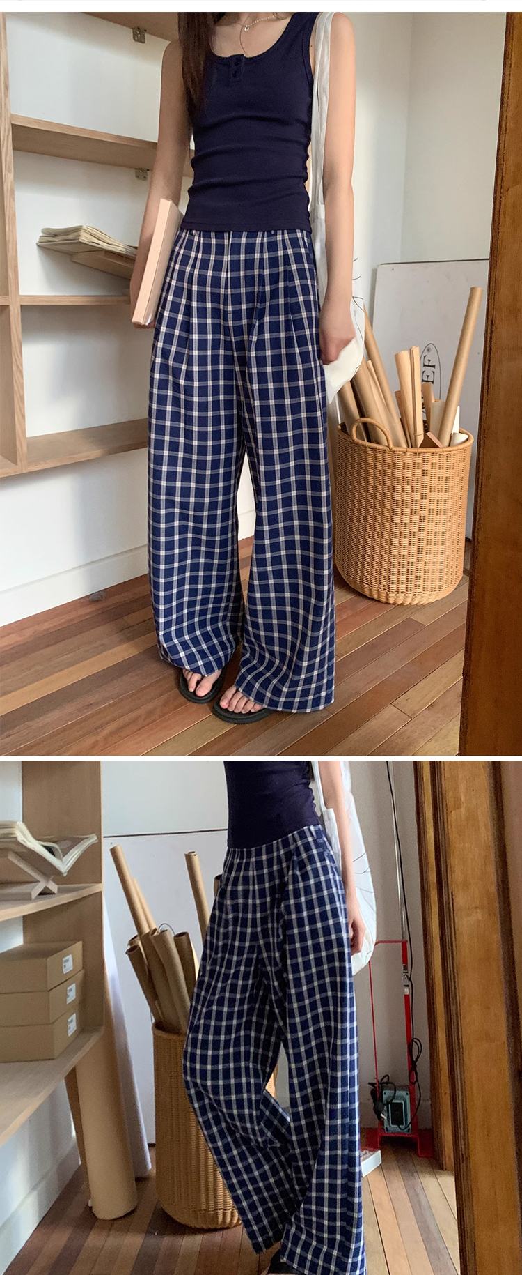 ハイウエストラフ感チェック柄ワイドパンツ