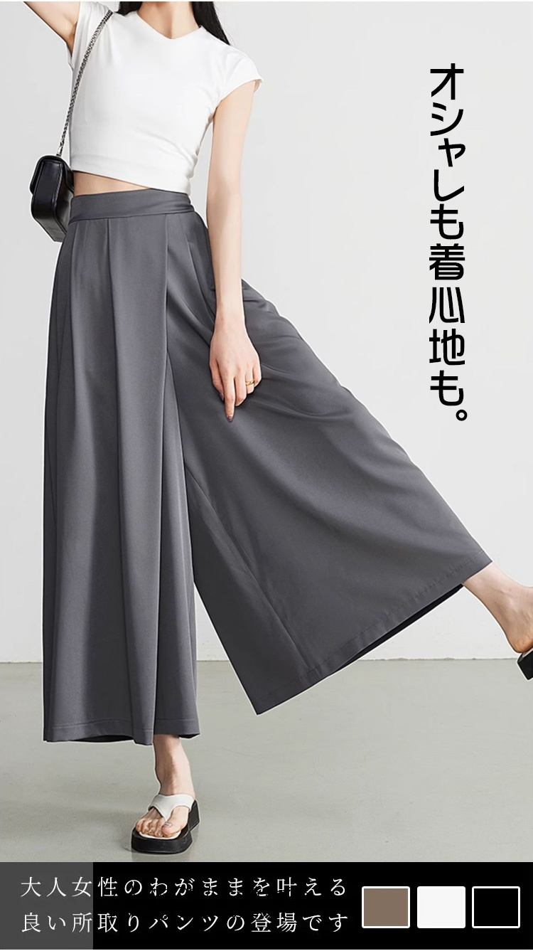 接触冷感ハイウエストガウチョパンツ